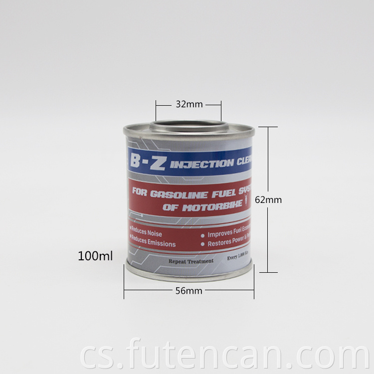 Velikost plechovky 100 ml kulatého plechového motorového oleje je 56 * 62 mm, použití na barvu, motorový olej, mazivo, brzdovou kapalinu a chemikálie, otvor je použit 32 mm plastový uzávěr. Naše MOQ je 3000ks s CMYK 4 barevným tiskem, pantonovým barevným tiskem. Můžeme vyrobit kulatou plechovku různých velikostí.